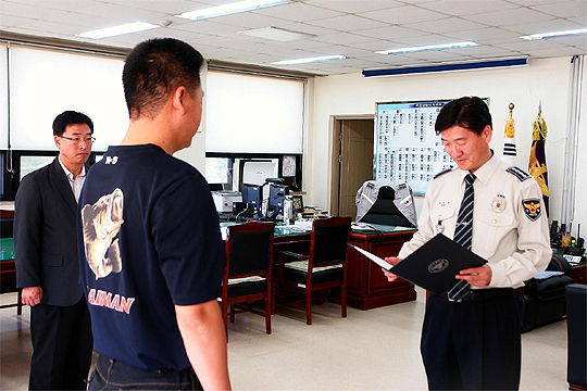 부안경찰서(서장 정병권) 정병권 서장은 27일 부안군 부안읍 소재에서 발생한 살인미수사건 용의자 조기검거에 도움을 준 개인택시 기사 임모씨(38)에게 감사장을 전달했다.