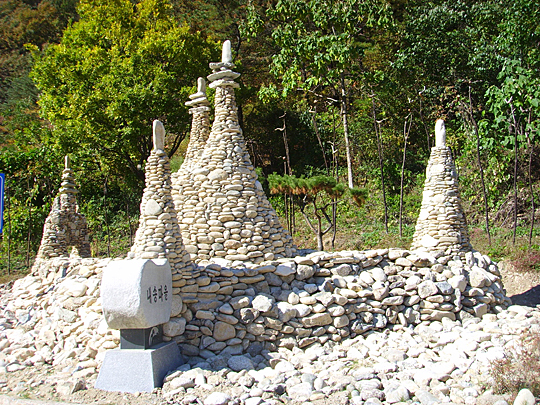 "이 돌탑이 우리 동네 마스코트여. 지나가다 이걸 보고 차에서 내려 사진 찍고 가는 사람이 한둘이 아녀. 아마 우리 동네 복덩이 아니 복돌이가 될 거야."