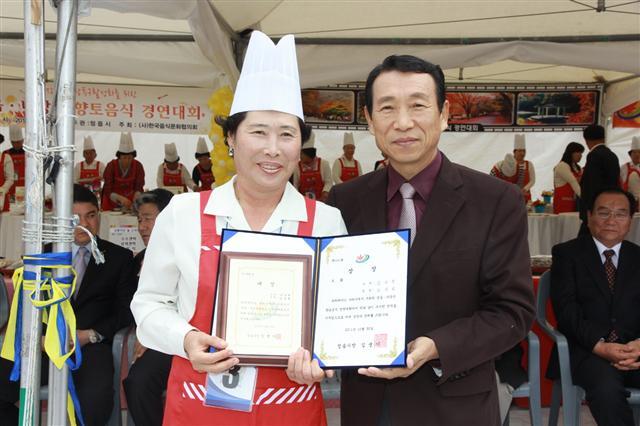 이번 대회 금상은‘선비약선 9품 구이’를 출품한 산내면 김귀옥씨, 은상에는‘소고기 완자 산적’을 출품한 수성동 라길순씨가 차지했다. 또 다문화가정을 대상으로 한 아름다운가족상에는 중국음식인 만두와 정읍의 특산물인 단풍한우를 결합한 ‘단풍한우 만두’를 출품한 장옥화, 황위샤 팀이 수상, 솜씨상은‘단풍미인 인삼 떡갈비’를 출품한 산외면 김정숙씨등 총 15팀이 수상했다.