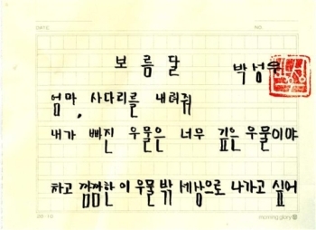 박성우 시인은 얼마 전까지 정읍 옥정호 일대 컨테이너 박스에서 살면서 시를 썼다. 첫 딸 규연이가 태어난 시점에 고향으로 돌아온 시인은 몸으로 부대끼는, 체화된 시쓰기를 원했다. 전북 문학인 친필 원고전‘전북 문학의 무늬’에서는 시인의 가는 몸과 여린 마음을 일궈주고 풍성한 시밭을 내어준 그의 손글씨 원고를 만날 수 있다.
