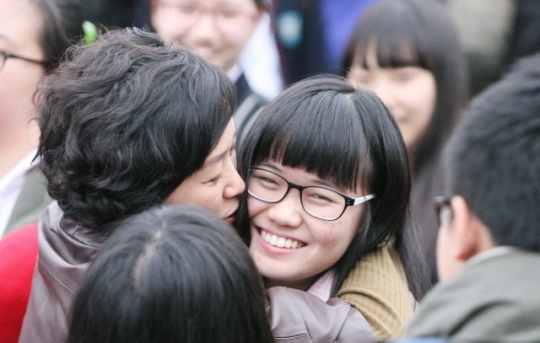 ▲ “수고했어 우리 딸”...2012학년도 대학수학능력시험이 실시된 10일 전주교육청 제16시험장에 한 수험생이 시험을 보고 교문 밖으로 나오자 어머니와 함께 부등껴 안고 환한 웃음을 짓고 있다. 추성수기자chss78@
