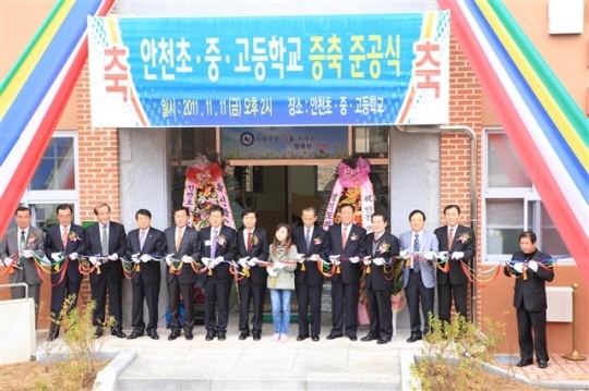 이러한 모교의 열악한 교육환경을 알게 된 한승헌 변호사(안천초 22회)를 비롯한 많은 동문들이 안천초·중·고교의 교사 증축을 교육청에 적극 요청, 지난 11일에 준공식을 가졌다.