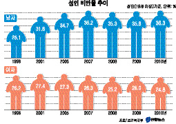 이번에 조사된 성인남성 비만율은 국민건강영양조사가 시작된 지난 1998년 이후최고치인 반면, 여성의 비만율은 역대 최저치다.