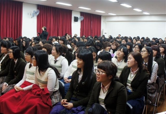 한편 김 교육감은 이날 소녀시대의 신곡을 언급하거나, 유행가 한 소절을 직접 부르면서 여고생들이 추임새를 이끌어내기도 했다.