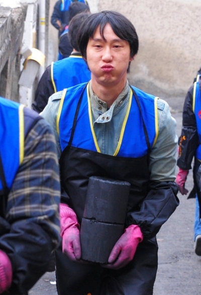 연탄을 나르기에 다소 사치스러운 복장을 하고 간 기자는 앞치마 두르고 고무장갑을 낀 뒤 그들 사이로 들어갔다.