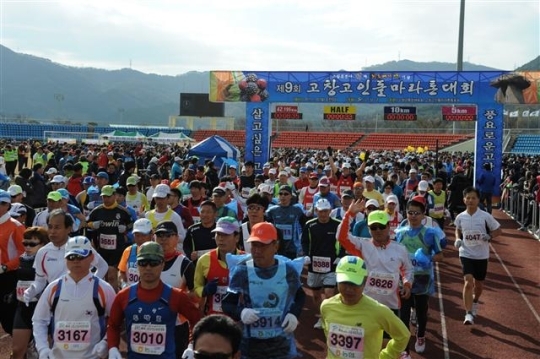 제9회 고창고인돌마라톤대회가 20일 고창공설운동장에서 열렸다. 5135명이 참가하여 힘찬 레이스를 펼친 결과 풀코스 강동식(익산)씨가 2시간 40분으로 1위를 차지했다.