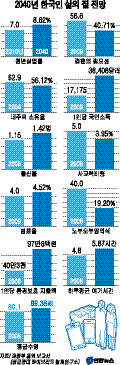 2040년에 한국인의 평균 수명이 90세에 이르고 1인당 국민소득이 4만달러에 육박할 것으로 전망됐다.