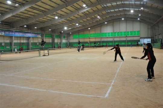 ▲  순창 공설운동장 실내다목적구장에서 열린 제41회 전라북도지사기 정구대회.