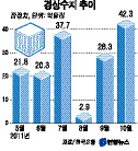 한국은행이 29일 내놓은 ‘10월 국제수지(잠정)’에 따르면 지난달 경상수지 흑자는 42억3천만달러로 전월 28억3000만달러보다 49.5% 늘었다. 20개월 연속 흑자행진으로 규모 면에서는 지난해 10월 54억9천만달러 이후 1년 만에 최대다.