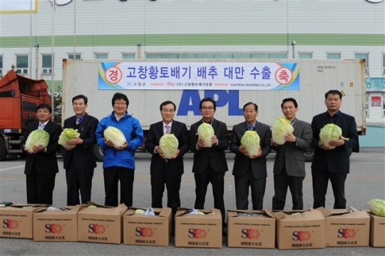 이번 대만 수출길에 오른 배추는 산지유통업체인 ㈜고창황토배기유통과 이 지역 재배농가에서 생산한 배추로, 대만의 대표적 식품유통업체인 ㈜썬후레쉬사를 통해 공급된다.