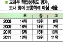 최근 교과부가 발표한 ‘2011년 국가수준 학업성취도 평가 결과’에서 도내 학생들의 영어 과목 ‘보통 학력’이상 비율은 전국 16개 시도교육청 중 초등학생 12위(86.5%), 중학생 13위(66.9%), 고등학생 11위(85.6%)에 머물렀다.