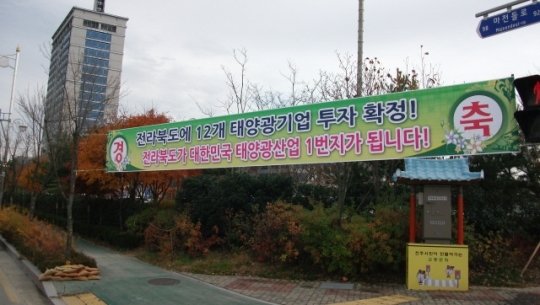 전북도가 게시한 현수막 내용을 보면 ‘보건관련 2개 분야 전국최우수 기관 선정’, ‘2012 대입 입시 설명회 및 맞춤형 상담’, ‘2011 지방세정 평가 최우수기관 선정’, ‘전북도 12개 태양광기업 투자 확정’ 등 도정 홍보 내용이 대부분이었다.