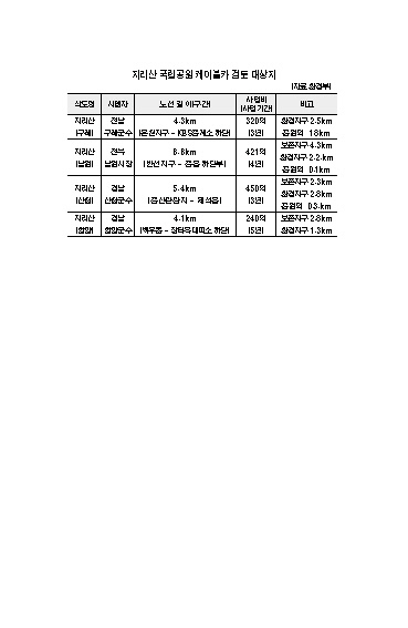 속보=환경부가 전국 국립공원 케이블카 사업 후보지 7곳을 정하고 최종 선정 절차에 들어감에 따라 지리산권역에서는 남원 등 자치단체 4곳이 본격적인 경쟁에 돌입했다.