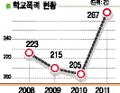 전북도교육청에 따르면 도내 학교폭력은 지난 2008년 223건에서 2009년 215건, 지난해 205건으로 줄어들던 것이 올 11월 30일 현재 267건으로 다시 증가 추세로 돌아섰다.