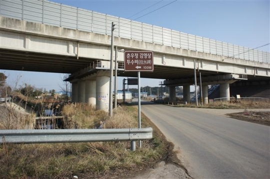 춘우정 김영상 투수비는 만경강이 내려다보이는 김제시 청하면 만경대교 밑에 세워져 있다.