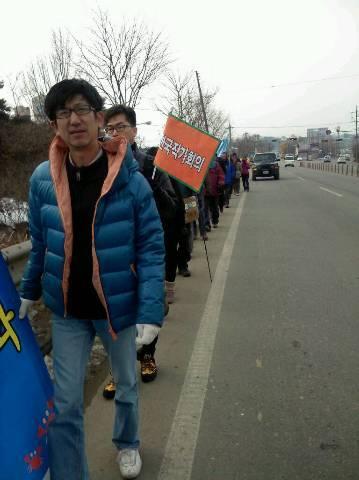 전북작가회의(회장 안도현)가 1번 국도를 따라 임진각에서 제주도 강정마을까지 걷는 '글발글발 평화 릴레이'에 참여하고 있다.