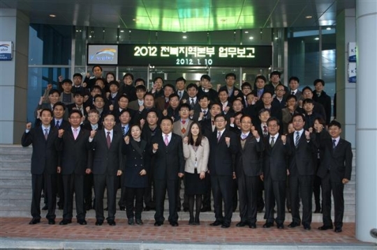 K-water 전북본부(본부장 이석천)는 10일 대회의실에서 김건호 사장과 이석천 전북본부장, 산하부서장을 비롯한 전직원들이 참석한 가운데 2012년 신년 업무보고 및 현안사항 토론회를 실시했다.