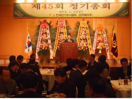 한국전기공사협회 전라북도회(회장 김종열)는 11일 전주코아리베라호텔(백제홀)에서 김승수 정무부지사, 한국전력공사 유명호 전북본부장, 한국전기안전공사 김학용 전북지역본부장 등과 회원 200여명이 참석한 가운데 제45회 정기총회를 개최했다.
