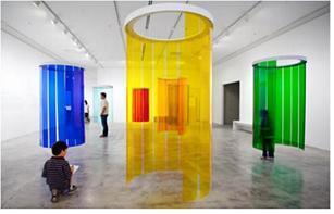 즉 관객의 이동과 시선에 따라 선과 형태가 움직이거나 가만히 보아도 시각적인 효과가 강한 작품들을 옵아트로 통칭된다. 관람객들은 색과 빛을 이용한 작품들에 직접 뛰어들 수 있어 관람의 즐거움과 함께 작품에 숨겨진 과학 원리도 깨달을 수 있다.