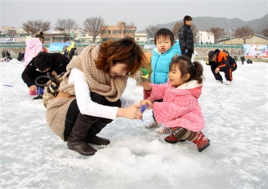 제1회 무주 남대천 얼음축제가 13일 시작돼 방학을 맞은 가족 여행객들에게 신선한 경험을 선물하고 있다.