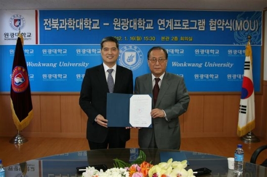전북과학대학교(총장 김동준)와 원광대학교(총장 정세현)는 16일 원광대학교 대학본부 2층 회의실에서 교육사업 활성화를 위한 양 대학간의 연계프로그램 협약을 체결했다.