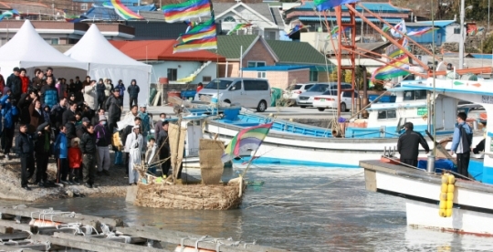이날 이른 아침 마을풍물패의 오방진굿, 풍년굿, 띠뱃굿으로 시작된 이번 행사는 당산제를 올린 뒤 마을 뒷산 원당(願堂·소원 비는 곳)에서 제사도 지냈다. 또 마을과 띠배전수관을 한바퀴 돌며 지신밟기한 뒤 흥겨운 풍악 속에 바다앞 광장(물양장)에서 용왕제가 거행됐다.