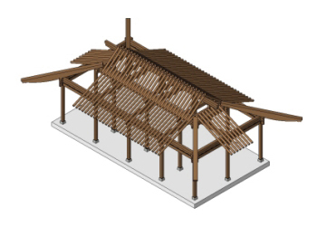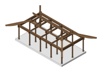 서까래(도리 또는 보에 걸쳐 지붕 면을 채우는 나무), 산자 등을 얹으면 기본 구조가 완성된다. 산자는 서까래 위에 흙을 받쳐 기와를 이기 위해 가는 나무오리나 싸리나무 따위로 엮은 것이나 그런 재료를 뜻한다.