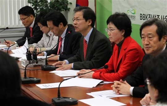 BBK진상조사위원장 가 26일 오전 국회 당대표실에서 열려 천정배 위원장이 모두발언을 하고 있다. 연합뉴스