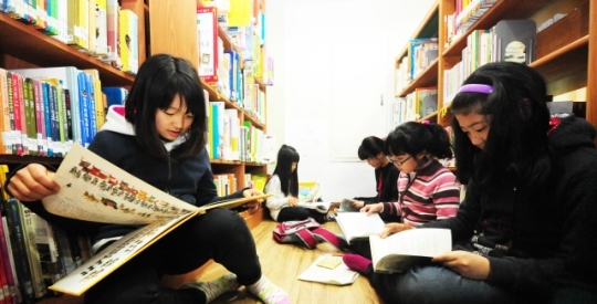 설연휴부터 이어진 추운 날씨가 계속된 26일 어린이들이 전주 한 도서관에서 동화책을 보며 시간을 보내고 있다.