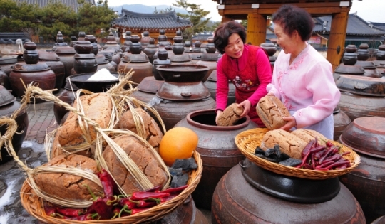 "원래 장은 말날(3일)에 담그는 거여." 1일 순창 민속마을에서 만난 제조 기능인 조경자 할머니(80)는 며느리 박현순(56)씨와 잘 말려놓은 메주를 항아리에 넣으며 이렇게 말했다. 고추장 하면 순창, 순창 하면 고추장 아닌가. 화끈함 속에 오묘한 맛이 어우러진 비결은 바로 이같은 어머니들의 손맛에 있지 않을까 싶다.