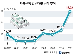 서민이 주로 이용하는 저축은행의 대출금리가 높아지면 차입자의 부채상환능력이 떨어지고 저축은행의 건전성이 나빠질 것으로 우려된다.