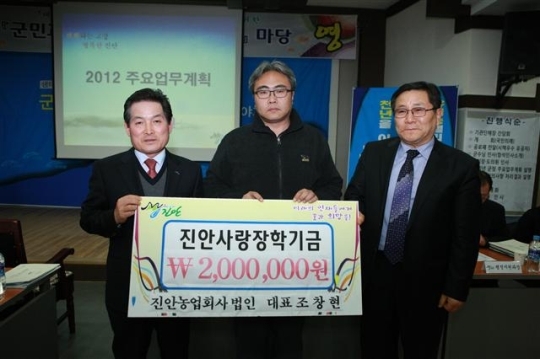 이 자리에서 조창현 법인대표는 "불우한 가정형편 때문에 정상적인 학업수행이 어려운 학생들에게 써달라"며 항상 어려울 때마다 도와주는 진안군 현장행정에 감사드린다"고 했다.