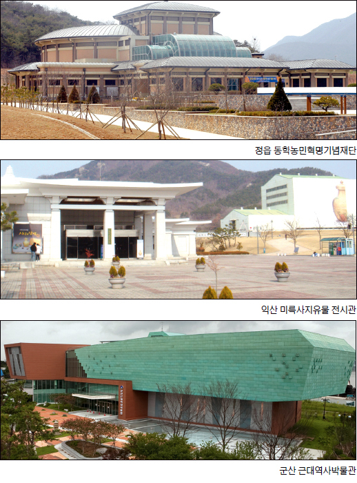 역사적 사건이나 특정 시기의 유물 등으로만 이루어진 기념관과 전시관, 박물관 등이 우리의 문화를 크게 살찌우고 있다. 정읍의 동학농민혁명기념관, 익산의 미륵사지유물전시관, 군산의 근대역사박물관, 부안의 청자박물관 등이 대표적이다. 아직 구체적 사업계획을 세우지 못한 부안 청자박물관을 제외하고, 이들 전문 기념관과 박물관은 공히 올 한 해 연구사업을 통해 역사의 깊이를 더하고, 국민들의 공감대를 넓히는 사업들을 계획하고 있다.