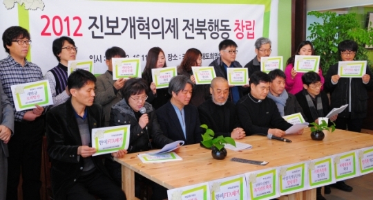 도내 시민사회단체와 종교계, 학계 인사들이 참여하는 2012 진보개혁의제 전북행동(이하 2012 전북행동)이 16일 출범식을 갖고 본격 활동에 나섰다. 2012 전북행동은 이날 '진보개혁과제 제안 정책토론회', '국회의원후보자 공개질의', '2012 진보의제 제안 선언''헛공약, 나쁜공약 선정' 등을 중심으로 한 사업계획안을 확정했다. 이들은 "철저한 인물 검증과 정당 정책평가를 검증할 계획"이라고 밝혔다.