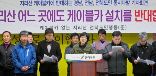 환경단체들은 이날 지리산 케이블카 설치 사업을 추진하고 있는 전북과 전남·경남지역에서 동시에 회견을 갖고, 케이블카 설치 계획 중단과 국립공원 보전 정책을 촉구했다.