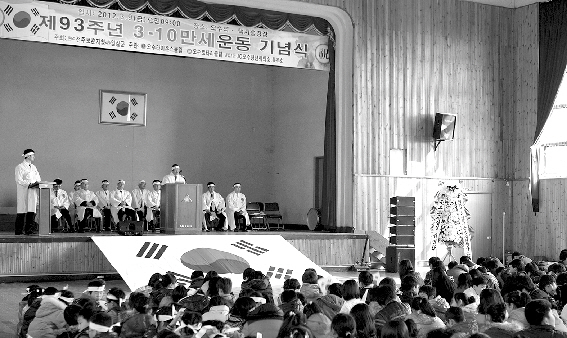 ▲ 임실 오수 3.10 만세운동 재현행사가 지난 9일 오수면 ㅇ리대에서 오수JC주관으로 이정태 부군수를 비롯 주민·학생 등 500여명이 참석한 가운데 열렸다.