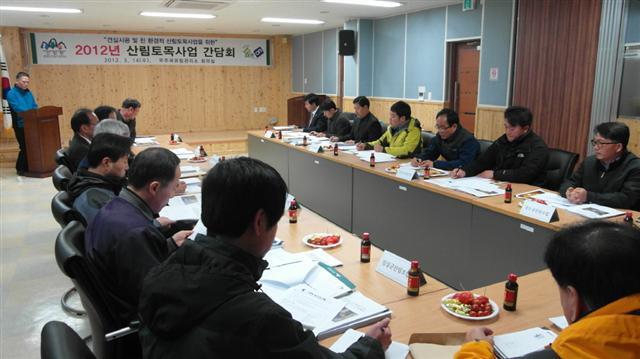 무주국유림관리소(소장 양민석)는 14일 관리소 회의실에서 2012년도 산림토목사업에 대한 설계·시공· 감리자와 담당공무원이 참석한 가운데 간담회를 가졌다.