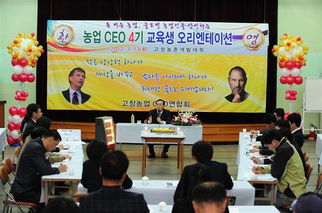 고창농촌개발대학(대학장 이강수 군수)은 지난 13일 선운산 유스호스텔에서 2012년도 농업CEO 신입생 및 연합회원 50명을 대상으로 오리엔테이션을 개최했다.