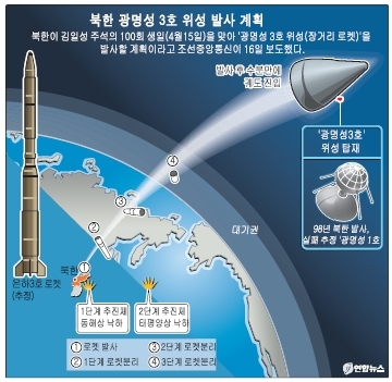 북한이 김일성 주석의 100회 생일(4월15일)을 맞는 다음달 장거리로켓인 '광명성 3호 위성'을 발사할 계획이라고 밝혀 남북, 북미간은 물론 국제사회에 파장이 예상된다.