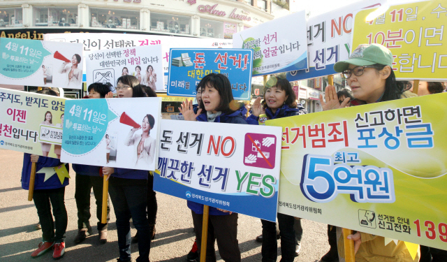 전주 덕진 선거관리위원회는 20일 전북대학교 구정문에서 제19대 국회의원 선거 투표참여 및 공명선거 캠페인을 갖고 있다.