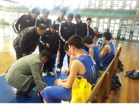 ▲ 군산중학교 농구부가 전국소년체전 전북대표 선발전에서 3차전까지 가는 치열한 접전끝에 전주남중을 꺾고 5년만에 전북대표로 출전한다. 사진은 오세일 감독이 선수들에게 작전지시를 하는 모습.