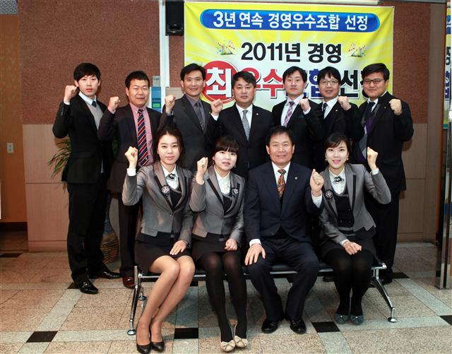▲ 2011년 신협중앙회 경영평가에서 창립이후 처음 경영최우수조합으로 선정된 전주 양우신협 직원들.