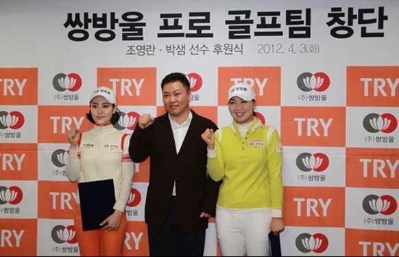 쌍방울은 3일 서울 삼성동 본사에서 한국여자프로골프협회(KLPGA) 투어 소속 조영란, 박샘 선수와 후원 조인식을 했다.