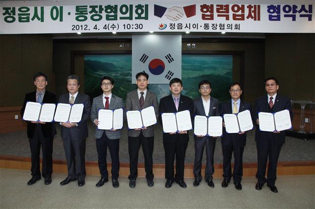 정읍시 이·통장협의회(회장 김정호)와 정읍사랑병원, 한서요양병원, 신태인 장내과의원, 호남장례식장, 신태인장례식장, 세브란스안경원, 정읍국제보청기는 지난 4일 시청에서 이·통장 및 지역주민의 후생복리 증진과 상호 협조를 위한 협약을 체결했다.