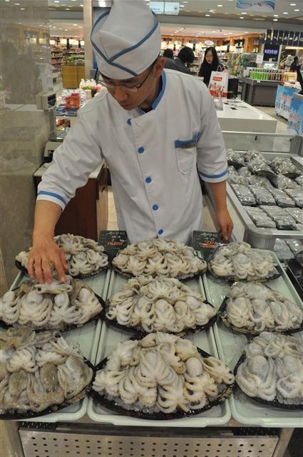▲ 주꾸미 제철을 맞아 롯데백화점 전주점은 지하1층 수산물 매장에서 주꾸미를 판매하고 있다.