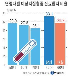 15일 국민건강보험공단이 건강보험 진료비 지급자료를 분석한 데 따르면 지난 2010년 1차 건강검진 수검자 1천85만명 가운데 이상지질혈증 질환 의심자가 261만명으로 전체의 24.1%를 차지했다.