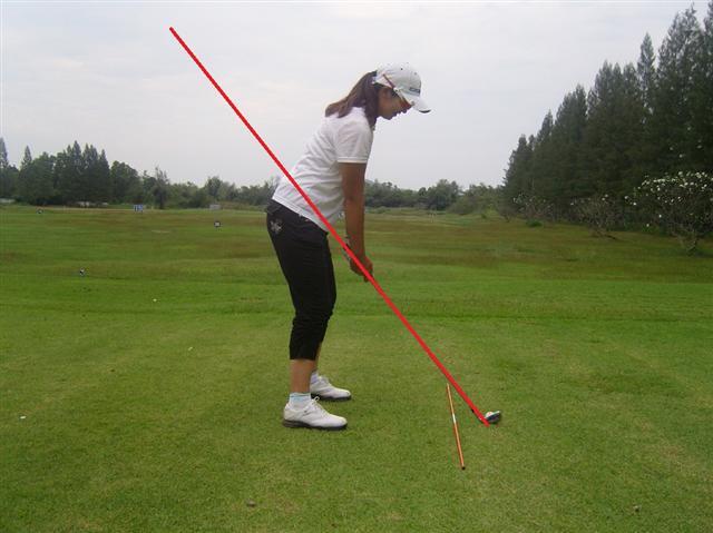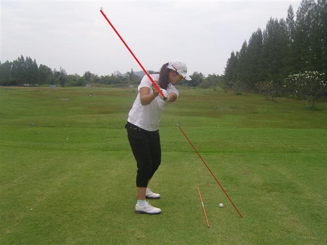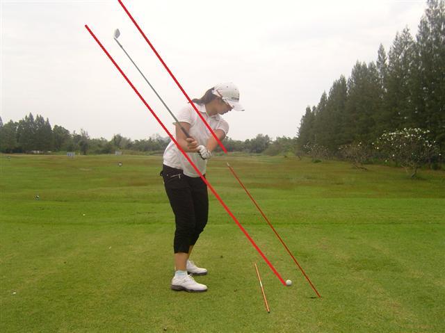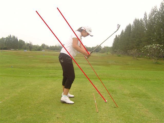 사진4와 같이 클럽의 헤드와 샤프트가 앞으로 나간다면 아웃사이드 인 스윙이 되기 쉬며, 공은 슬라이스가 난다. 이 같은 현상을 오버더 탑이라 한다. 클럽이 구멍에 들어가지 않았기 때문에 붙여진 명칭이다.