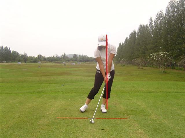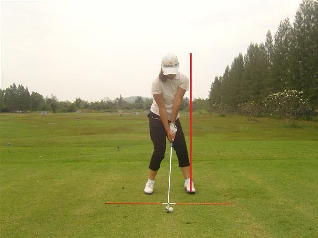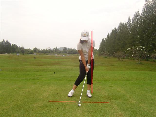 회전축의 지지 선은 왼쪽다리에서 수직으로 올라가는 가상의 선이 된다. 이선을 몸통 즉 고관절이나 무릎이 넘어가게 되면 슬라이딩 된 스윙이며, 이 스윙으로는 좋은 결과를 기대하기 어렵다. 반대로 몸의 너무 넘어가는 것을 방지하기 위해 체중이동도 제대로 하지 않고, 몸을 오른쪽으로 빼게 되면 사진3과 같은 동작이 된다. 이것을 피벗이라 한다. 피벗은 체중이 회전 동작의 반대 방향으로 움직이는 것으로 거리와 방향에 치명적인 역할을 한다.