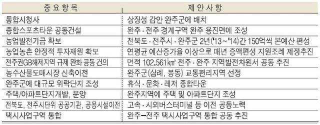 우려가 됐던 통합시 청사 위치 문제는 전주시의 양보로 의외로 쉽게 풀렸다. 대신 통합시 명칭은 '전주시'로 합의됐다. 올 추경부터 예산을 세워 사업을 발주하는 방안이 논의됐다.