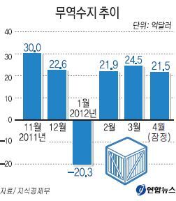 4월 무역수지가 22억달러 흑자를 기록했다.